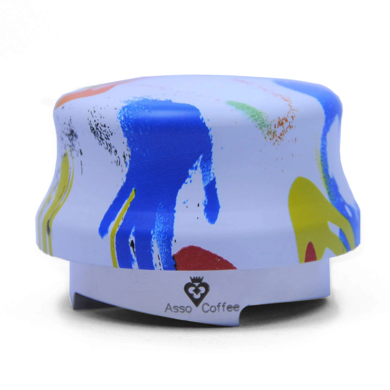 The depth at which you level the grounds in your portafilter is adjustable to the millimeter, with each setting clicking into place and locking in for consistent results. To distribute and tamp, simply place the Jack on top of your portafilter and spin rapidly, adjust height as needed. As a signature, the Asso Coffee branding is laser engraved into the body.