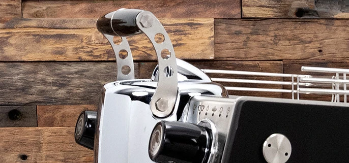 The key to understanding what the Mina has to offer is at its heart: the DFR (Digital Flow Regulator) and a custom made Flow Meter. This is the first flow meter designed for an espresso machine and it is so accurate that it can measure up to 80 pulses per second. Now, when approaching the Mina, perhaps the first thing you’ll notice is the yoke above the brew group. The yoke works with the DFR and Flow Meter. You can use the yoke in both the manual and automatic mode and, when brewing coffee by using the control knob on the right, you will brew in the automatic mode only. This manual lever allows you to adjust flow rate in five stages during your extraction between 0 and 12 grams/second. Each stage of flow rate is represented by a series of lights on the right side of the machine as a visual aid. By adjusting flow rate, you’re granted a new level of control over your extraction, essentially creating a unique extraction profile. With the Mina, Dalla Corte’s mission was to offer control over your espresso’s balance, acidity, sweetness—even it’s aftertaste and texture. After testing it, we think Dalla Corte has achieved that mission in spades.