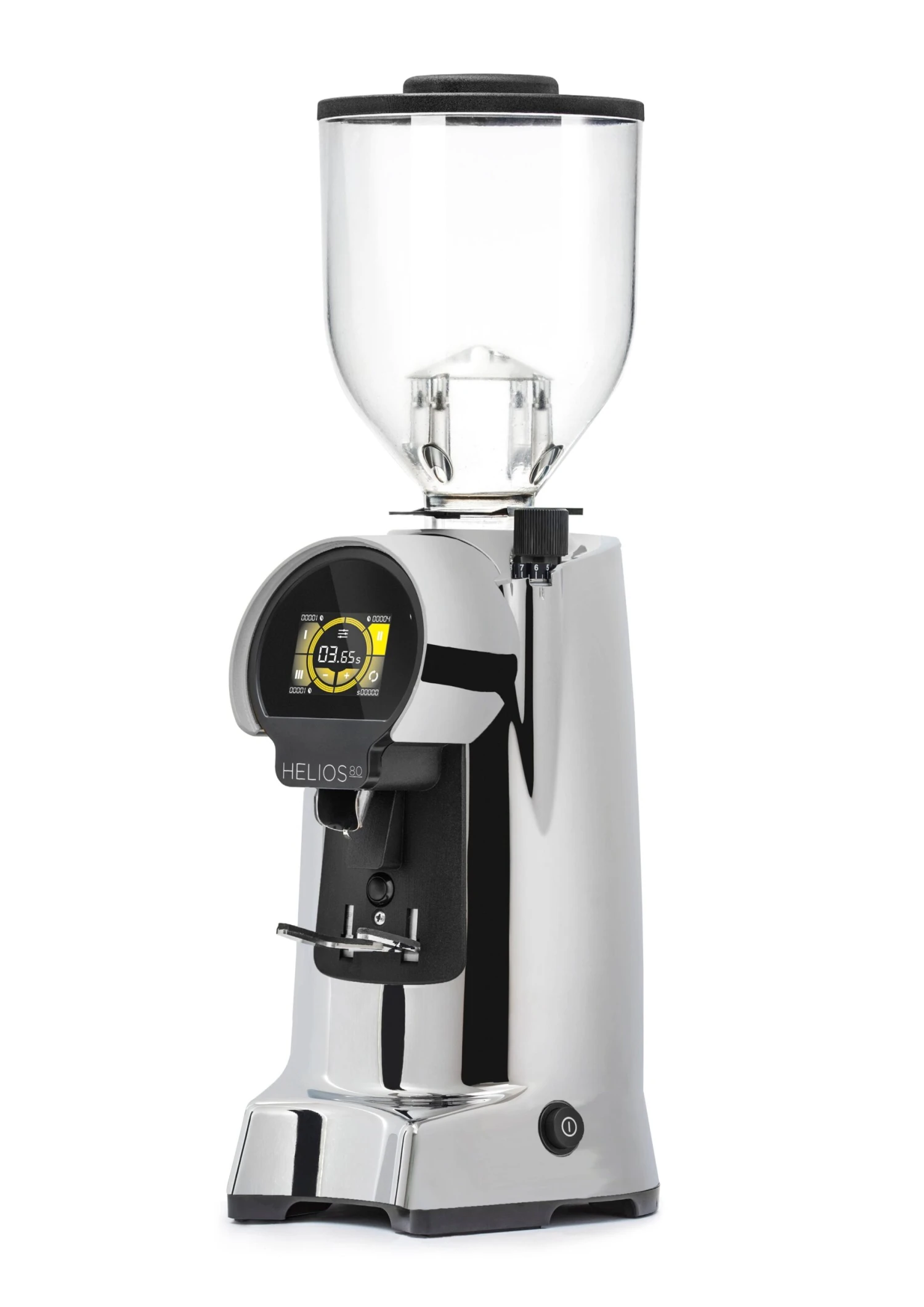 The Eureka Helios 80 is a commercial-grade grinder that’s perfect for any commercial kitchen, cafe, or commercial level at-home setup. The Helios 80 has the high-quality features that Eureka is known for, including their patented micrometric stepless adjustments, the ACE system, and programmable dosing options on the machine’s full-color touchscreen display. The Helios 80 can grind up to 8 grams of coffee per second, so you can keep the flow of your brewing process moving quickly while still getting great consistent results for your doses.