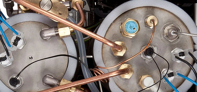 Inside the machine, you’ll find the internal components to be incredibly well-organized, which is an often underappreciated touch that you don’t see in many other machines. Copper coils and water lines trace from one brass fitting to the next.