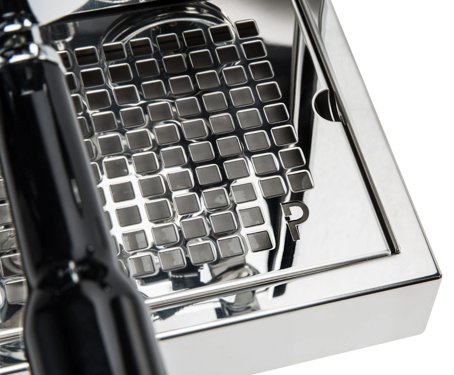 Profitec presents us with the Pro 700; their preeminent dual boiler machine which thrilled us from the moment we first unboxed it. What you’ll first notice is the quality of German design combined with Italian conventions in a stainless steel housing, polished to a mirror finish. The latest version features eye-catching cosmetic upgrades, such as streamlined, signature branding on the front panel, drip tray, and the redesigned jet black pressure gauges.
